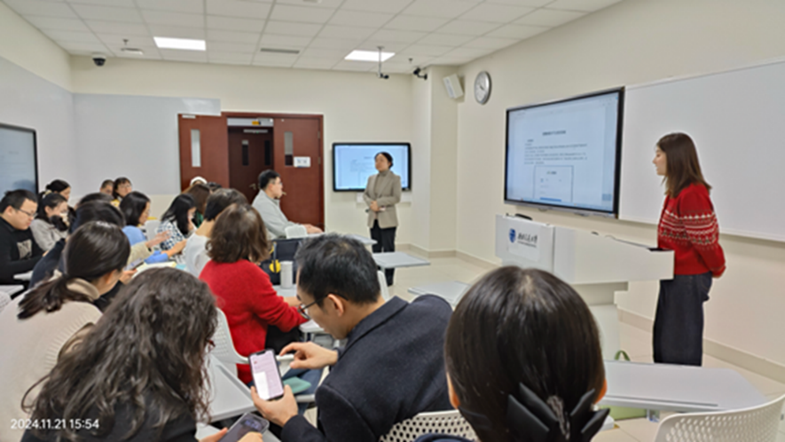 抓技能,以新质技术赋能教学。网络化、数字化、智能化是当前教育创新的新动能,学院将加强思政课数字化建设作为重点工作全力推进。一是组织教师参加各层级的数字技能培训、参加教育数字化会议;二是请数字平台专家专门开展讲座和指导,在所有课堂都实现数字化签到、讨论和互动;三是支持不同课程开展各有侧重的数字化改革,如“中国近代史纲要课”重构混合式课程2.0版;“习近平新时代中国特色社会主义思想概论课”启动课程知识图谱;“思想道德与法治”课将知识图谱、混合式课程相结合;“毛泽东思想和中国特色社会主义理论体系概论”研发AI伴学等。