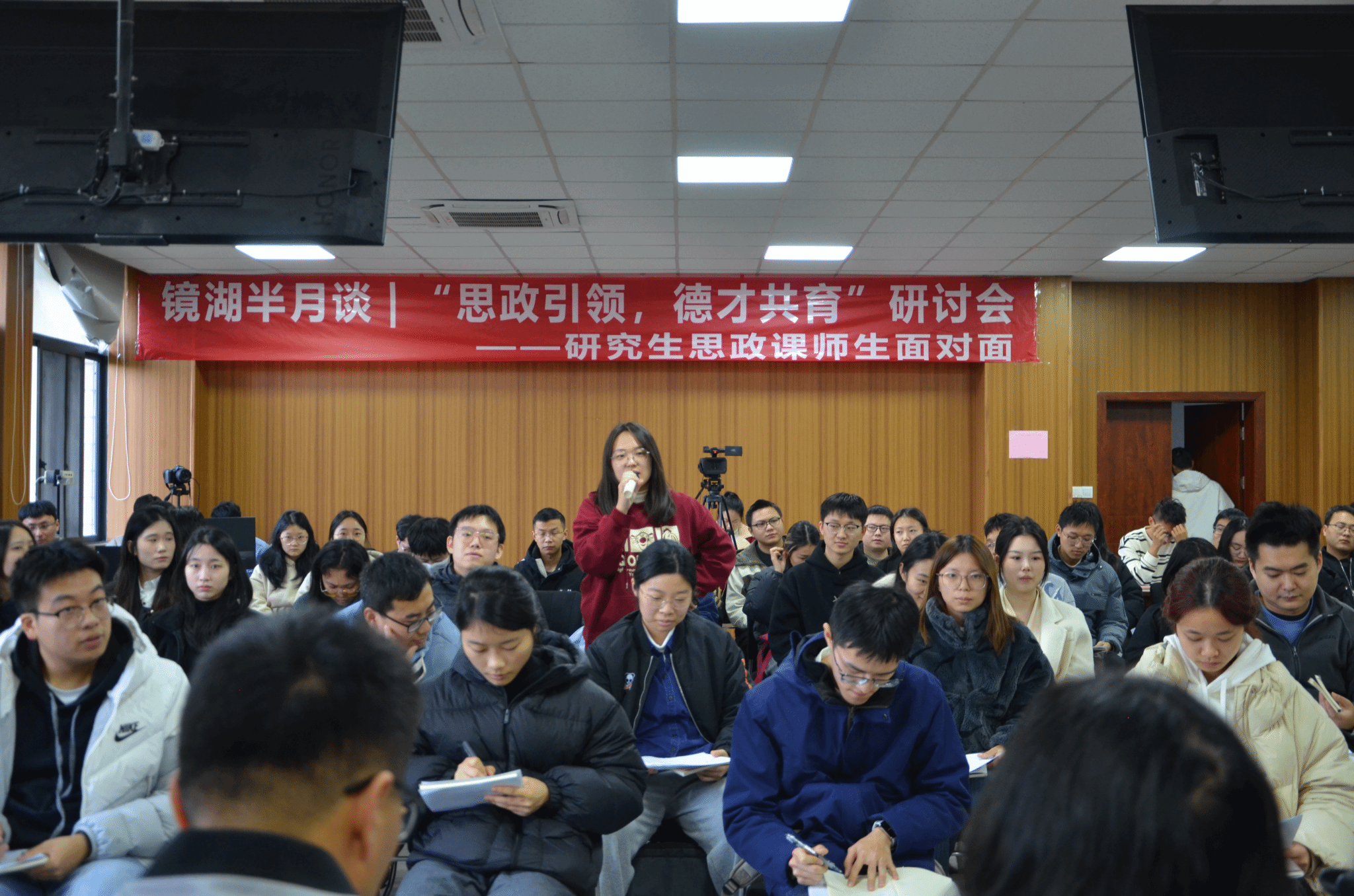 思政课的本质是讲道理。为了把马克思主义的道理讲深讲透讲活,提高研究生思政课的针对性和吸引力,2024年12月5日,研究生思想政治理论课教研室与土木工程学院研究生会共同组织和举办“必赢76net线路镜湖半月谈”。以“思政引领,德才共育”为主题,与全校各学院研究生代表共话研究生思政课教学,探寻研究生思政课的优化创新路径。