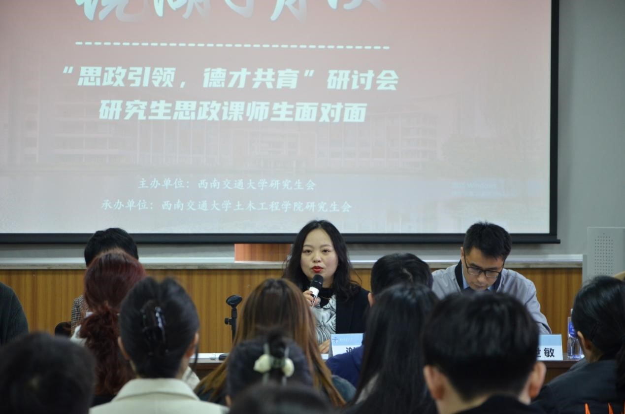 本次活动由教育部研究生思政课教指委委员、四川省名师工作室——“谢瑜”名师工作室的负责人、76net必赢线路检测中心谢瑜副院长主持。活动伊始,研究生思政课教研部李世敏主任向同学们介绍了教研室的基本情况并鼓励同学们积极发言,从自身学习体验出发,谈谈对研究生思政课的意见与建议。