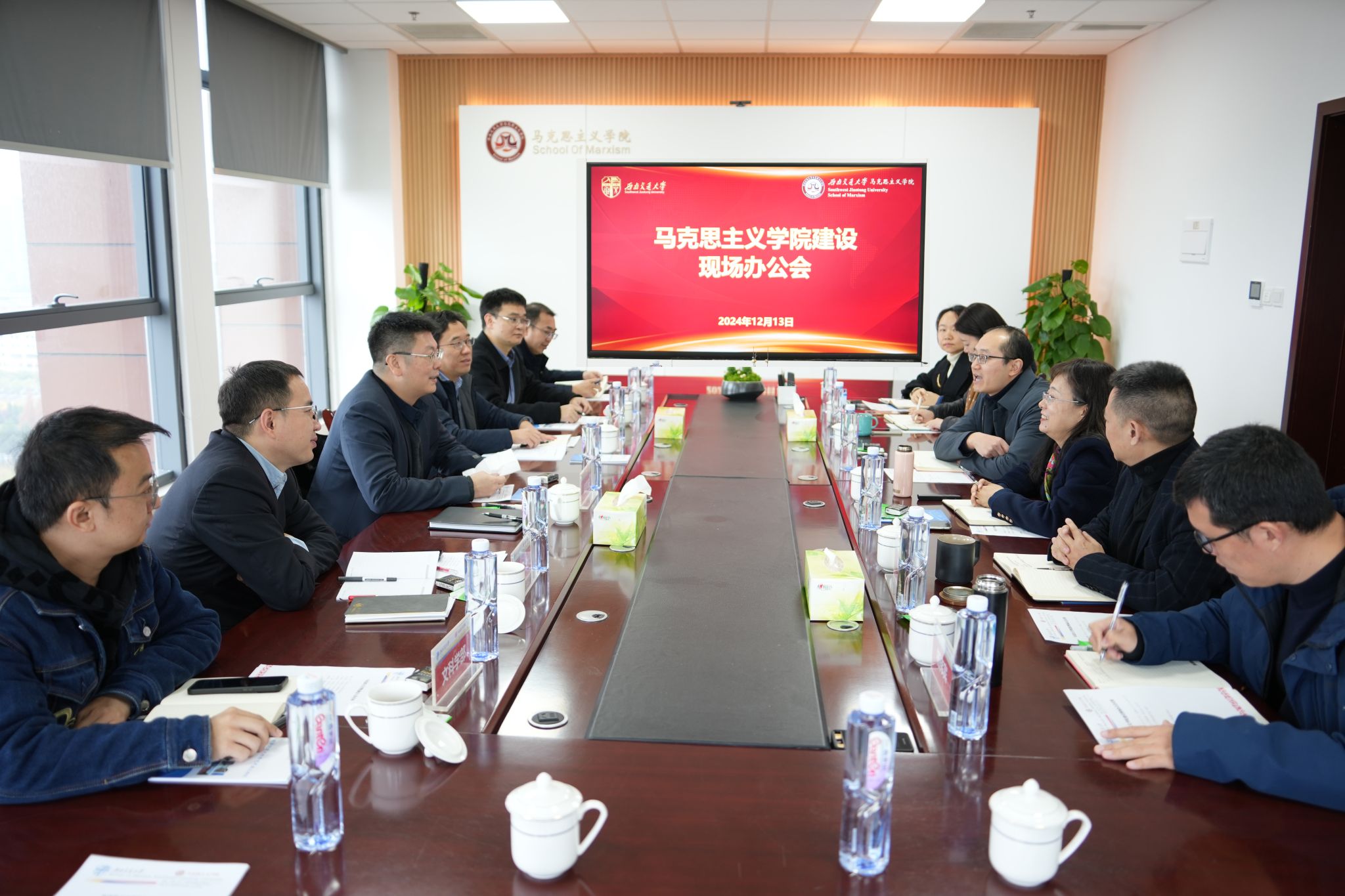 为进一步深入贯彻习近平总书记对学校思政课建设作出的重要指示精神和新时代学校思政课建设推进会精神,建强建好新时代76net必赢线路检测中心,推动76net必赢线路检测中心内涵式、高质量发展,12月13日上午,校长闫学东前往76net必赢线路检测中心调研并召开现场办公会。会议由学院党委书记廖军主持。