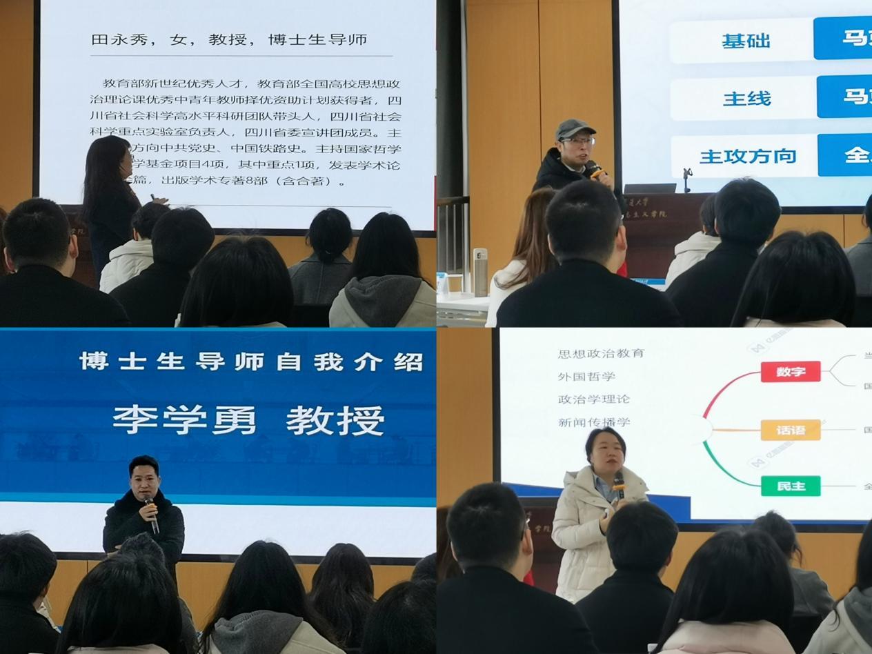紧接着,博士生导师们依次登场,从自身学术研究情况、未来研究方向以及博士招生要求等方面进行了详细的自我介绍。导师们丰硕的学术成果和前沿的研究方向,让营员们深受触动。导师们纷纷鼓励大家踊跃报考,加入学院的学术大家庭,共同探索学术的奥秘。