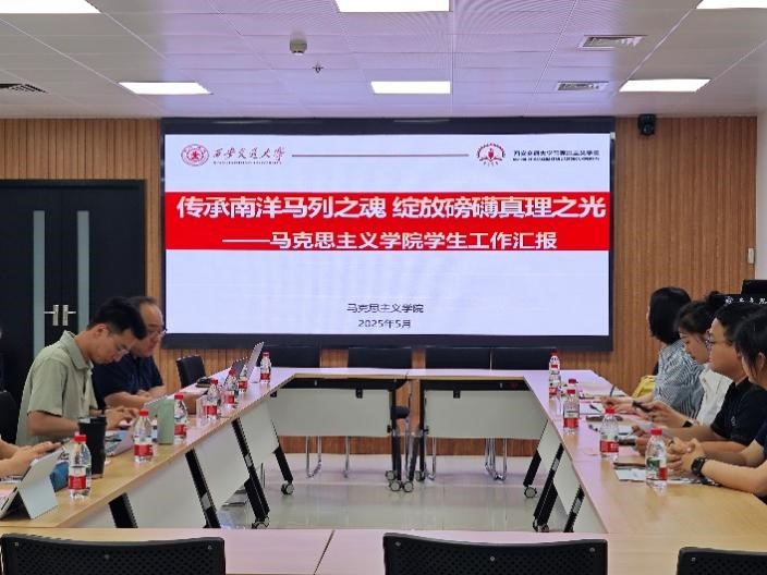 在会议的第一环节,邱辰以《传承南洋马列之魂 绽放磅礴真理之光》为题,简要介绍了西安交通大学马院的学生工作的基本情况和工作经验,他在结束时强调,做好学生工作要始终坚持“三个立足”,即立足学工看学工、立足学院看学工、立足发展看学工,把想到、看到的内容做到。