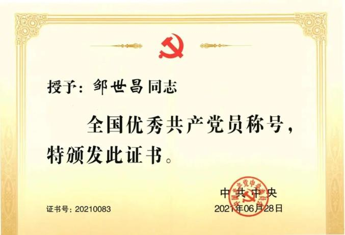 邹世昌获全国优秀共产党员称号