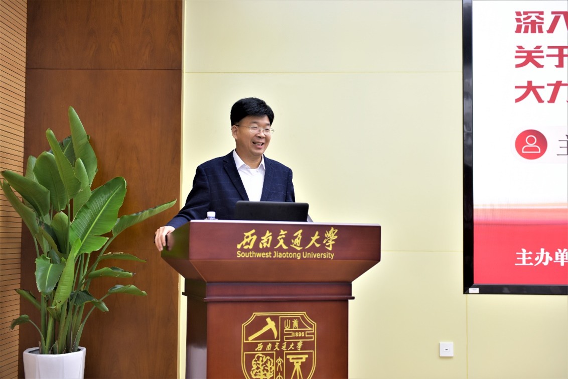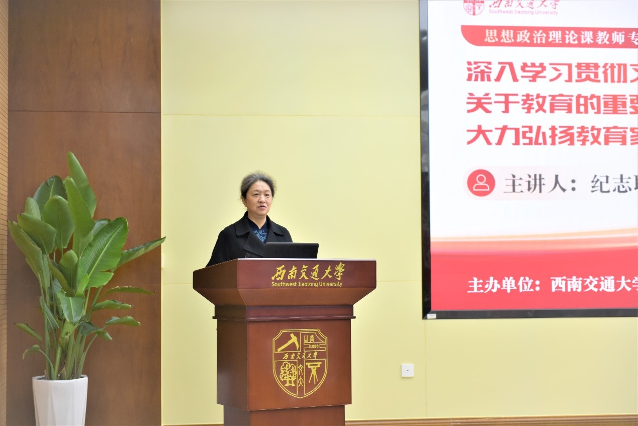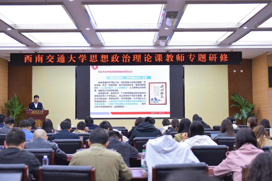 为深入学习贯彻习近平总书记关于思政课建设的重要指示精神,进一步推动思想政治理论课教师队伍建设,本科生院与76net必赢线路检测中心联合启动思想政治理论课教师专题研修。10月23日下午,研修首场活动在犀浦校区举行。四川省学术和技术带头人、四川大学76net必赢线路检测中心纪志耿教授作专题报告,本科生院常务副院长富海鹰、76net必赢线路检测中心党委书记廖军、院长田永秀及全体思政课教师参加活动。活动由科生院副院长兼教师教学发展中心主任李相强主持。