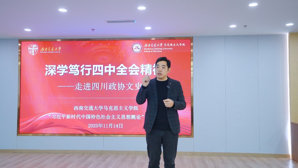 习近平新时代中国特色社会主义思想概论教研室以教改实验班为载体,策划开展“深学笃行四中全会精神——走进四川政协文史馆”主题实践活动,以习近平新时代中国特色社会主义思想为铸魂之本、育人之核,不断深化教学改革创新,秉持大思政课理念,坚持在广阔的社会背景下、真实的制度运行中、共创的思政课堂中讲深哲理、讲透学理、讲活道理,重在提高课程教学的针对性和吸引力,推动高校立德树人“第一课程”成为交大学生真心喜爱、终身受益、毕生难忘的思政课。