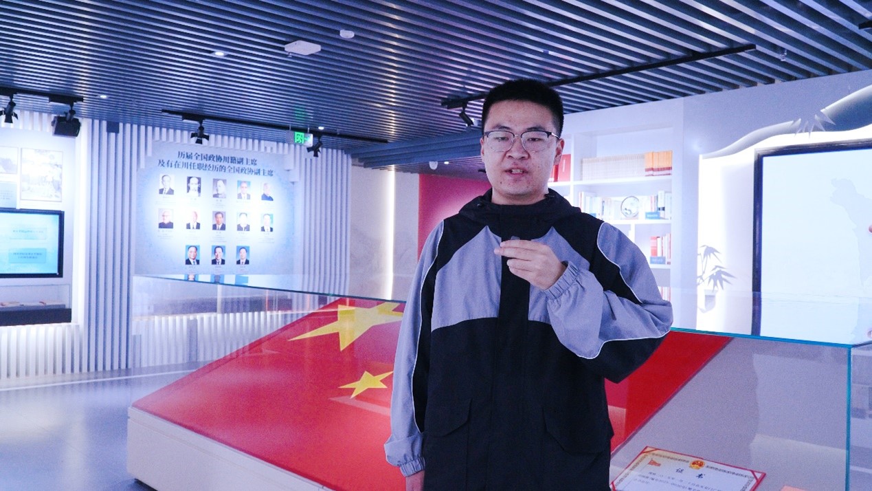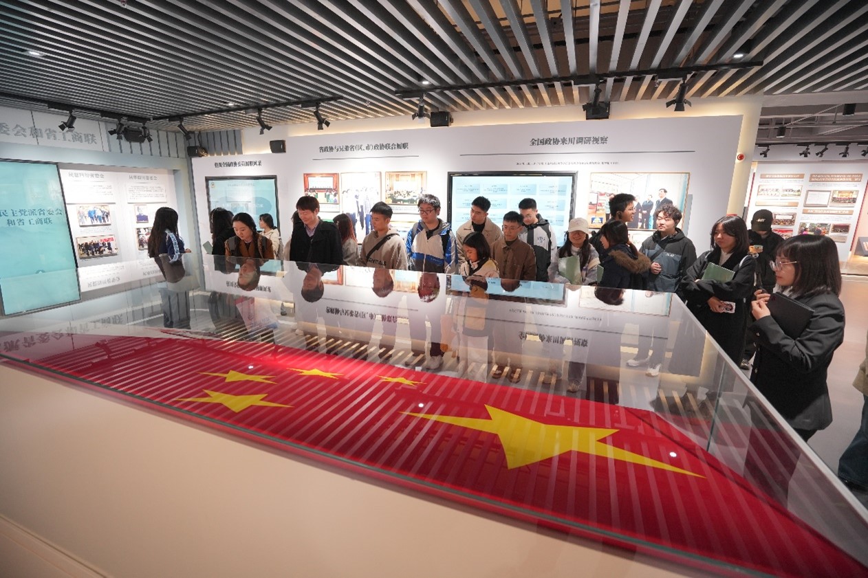 在“巴蜀换新天,齐心定宏谟”部分,学生们系统了解四川省政协成立前的各协商组织及主要工作,回顾四川全境解放、四区政协委员会成立、协助土地改革镇压反革命和“三反”“五反”、协力抗美援朝保家卫国运动、筹备成立四川省政协等四川启新;在“凝心助建设,探索遇曲折”部分,学生们透过诸多史料,学习四川省政协如何在坚持党对统一战线和政协工作的领导下,协商讨论全省各方面工作的重大问题,为推动社会主义改造和建设贡献力量;在“改革涌春潮,携手跨世纪”部分,学生们感悟改革开放和社会主义现代化建设新时期的四川省政协,全面了解四川省政协为农村改革、城市改革、对外开放、“老少边穷”地区脱贫致富、三峡工程项目论证、西部大开发战略、社会主义新农村建设等中心工作献计出力,了解四川省政协如何参与并见证推动改革开放的伟大历史进程;在“砥砺新时代,同心向未来”部分,同学们细致观看四川省政协在新时代新征程上的新发展,当讲解到北京市人民政府天安门地区管理委员会授予四川省政协的五星红旗时,学生们都被吸引驻足观看,深受鼓舞和振奋,进一步深化了对中国特色政党制度的情感认同和思想认同。